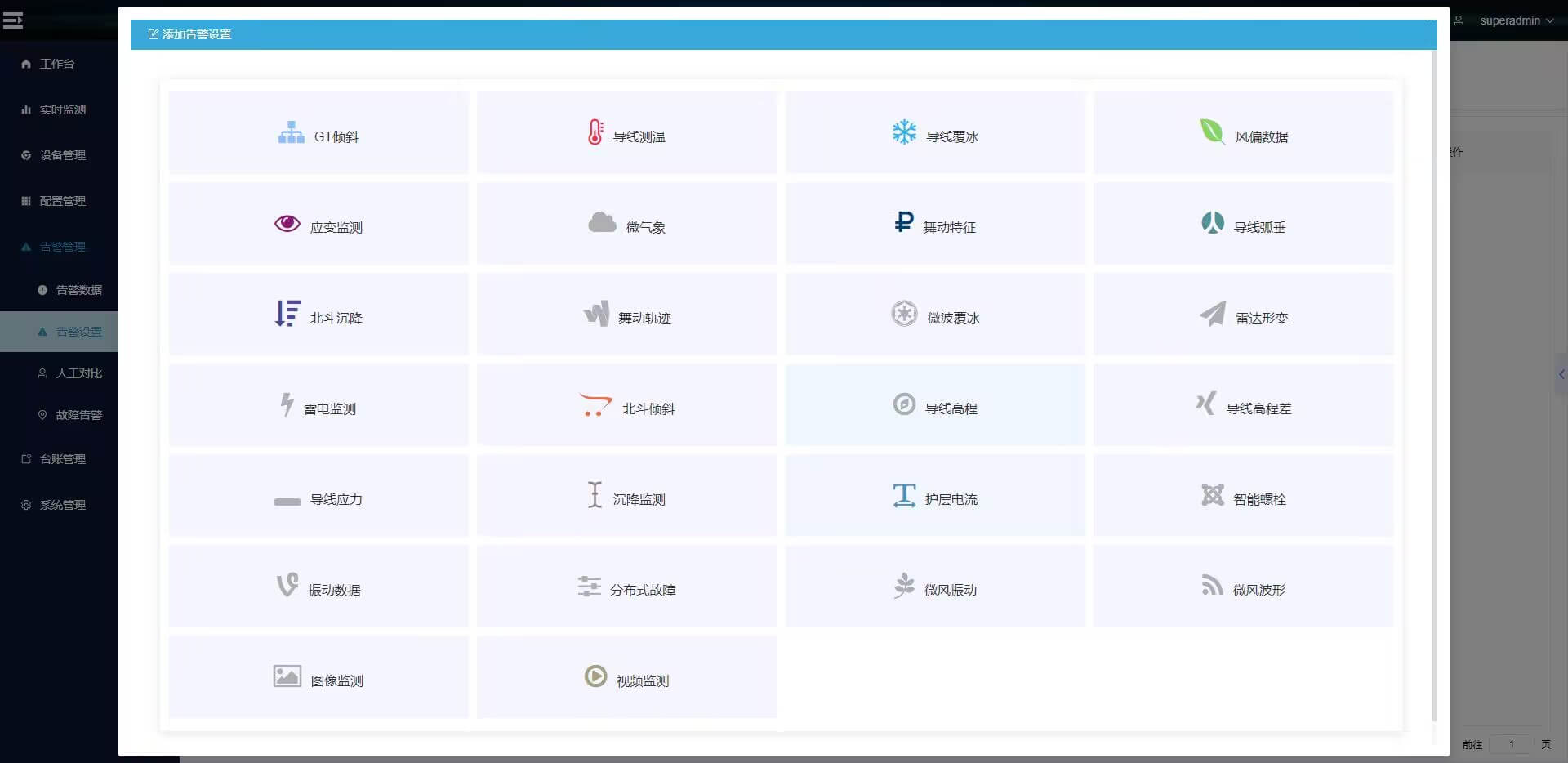 安全電網(wǎng)監(jiān)測系統(tǒng)軟件平臺TLKS-PMS主要由監(jiān)控平臺、設備通訊處理服務及各類子監(jiān)控巡視系統(tǒng)組成。整個系統(tǒng)以監(jiān)控平臺為核心,完成對各類子系統(tǒng)的整合,集中實現(xiàn)監(jiān)控數(shù)據(jù)處理、實時巡視、數(shù)據(jù)分析、數(shù)據(jù)推送等功能,并完成與其他系統(tǒng)的鏈接通信。實現(xiàn)對輸電線路現(xiàn)場視頻、施工環(huán)境、覆冰、氣象、振動、形變監(jiān)測等各種重要信息的集中收集、處理、巡視、預警等功能。