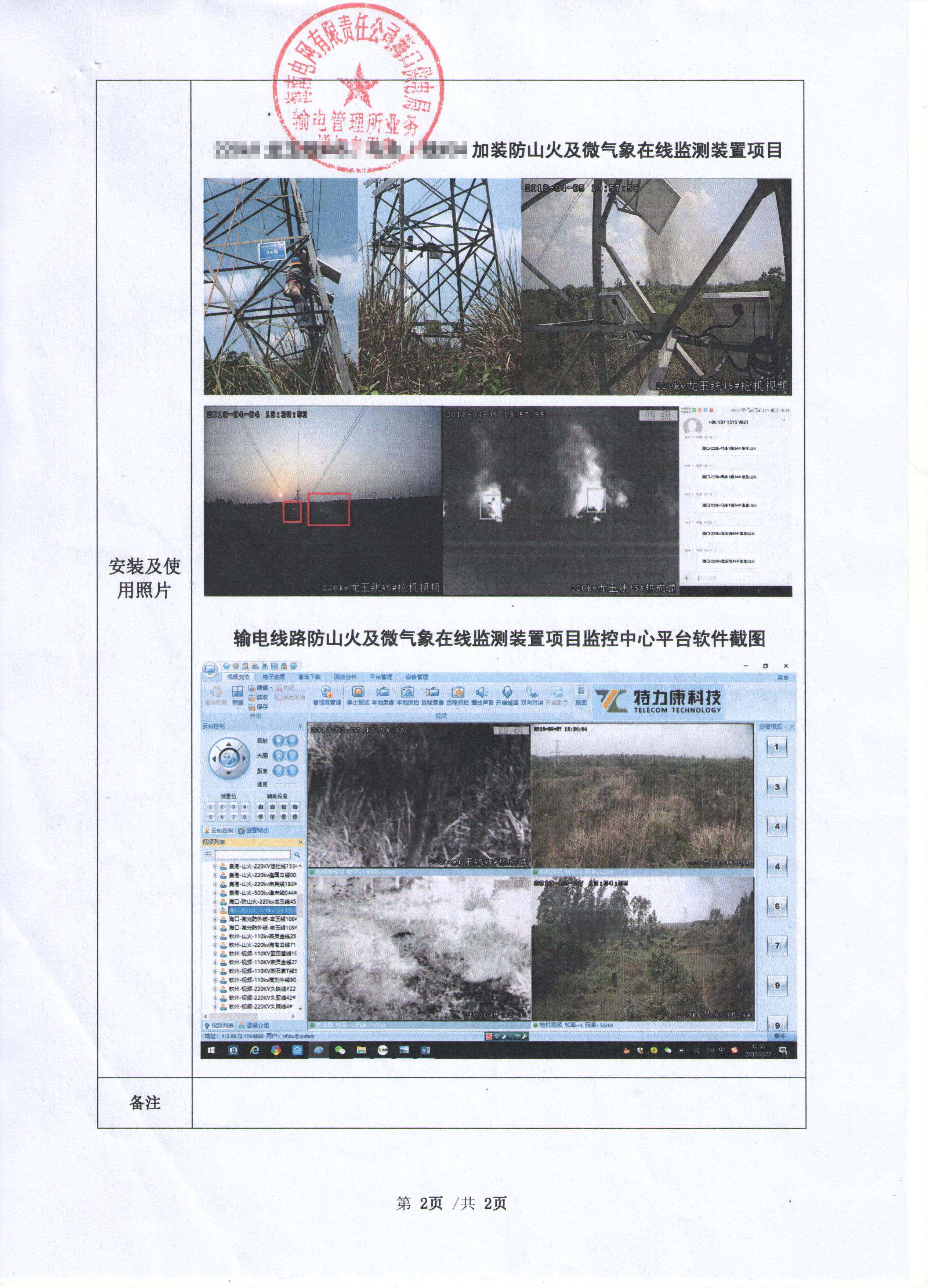 設(shè)備于2018年1月26日安裝并投入使用,使用至今,該設(shè)備及系統(tǒng)運(yùn)行穩(wěn)定,在使用過(guò)程中,設(shè)備能對(duì)輸電線路走廊山火及微氣象進(jìn)行監(jiān)測(cè),及時(shí)向維護(hù)人員發(fā)送報(bào)警信息,并聯(lián)動(dòng)錄像裝置,可以很好的監(jiān)測(cè)輸電線路山火及微氣象。