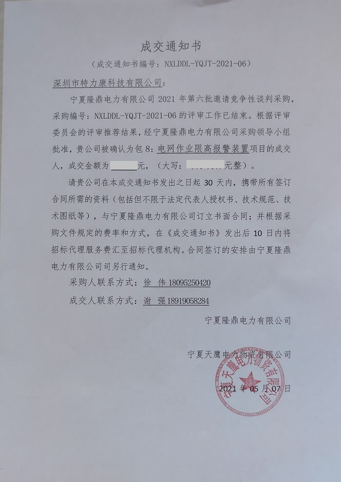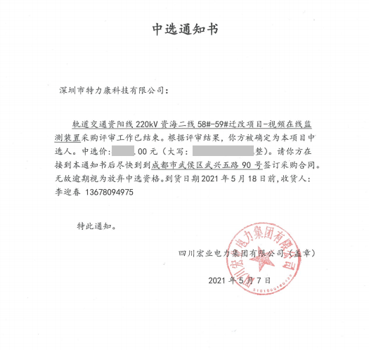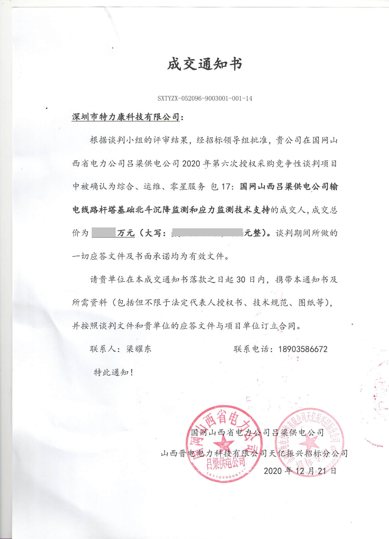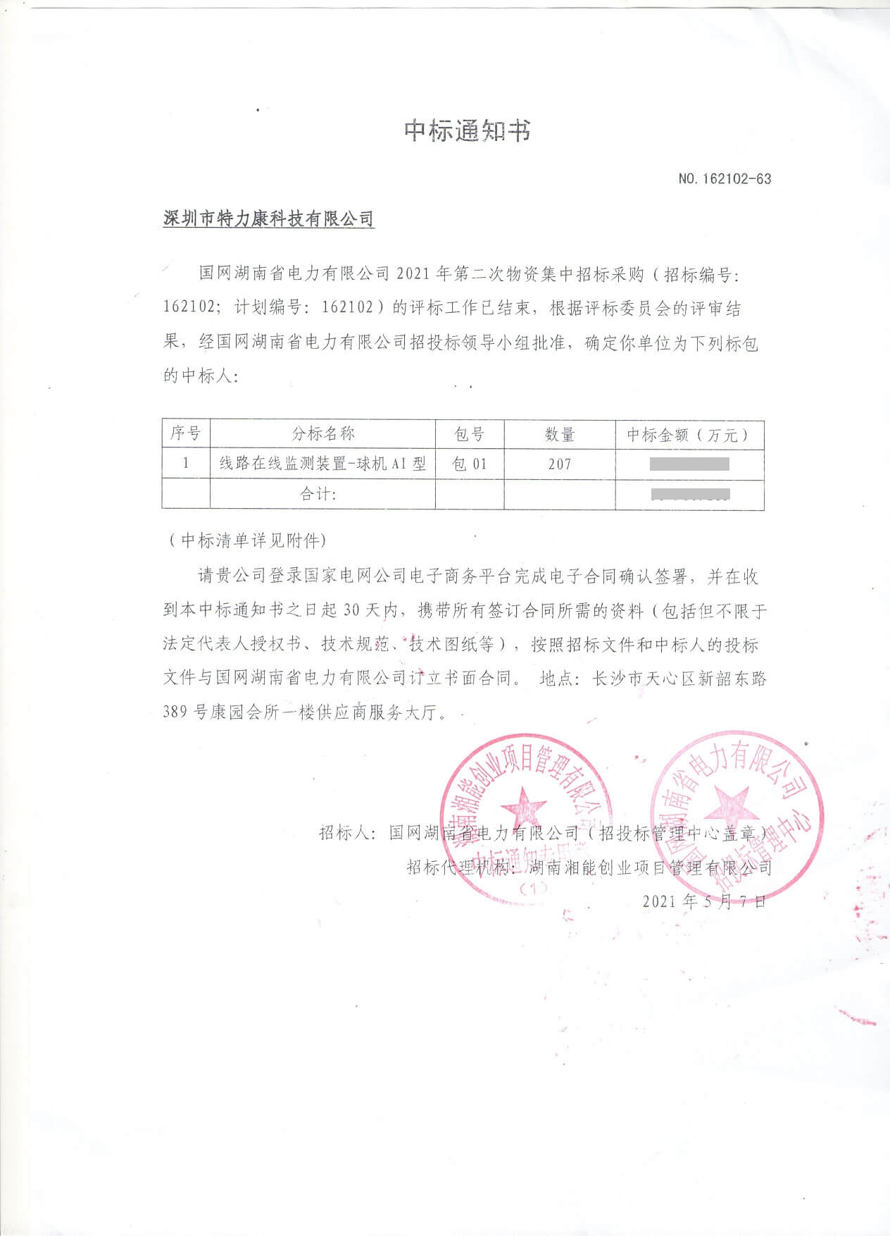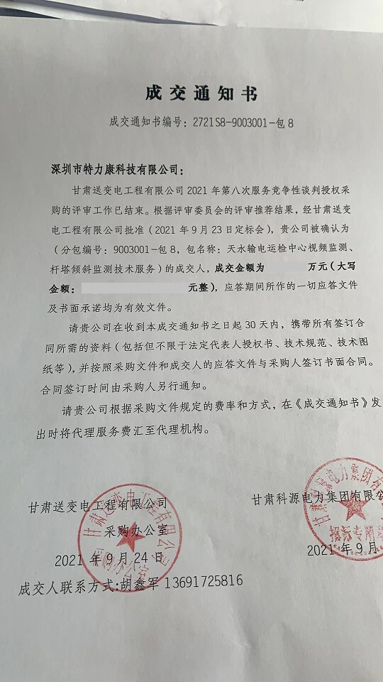 特力康中標(biāo)國網(wǎng)黑龍江送變電工程公司的2024年度第18次物資類競爭性談判采購項(xiàng)目——慶陽驅(qū)鳥器物資框 特力康中標(biāo)國網(wǎng)甘肅省電力公司省管產(chǎn)業(yè)單位2024年第五次物資競爭性談判授權(quán)采購項(xiàng)目 中標(biāo)喜訊:深圳市特力康科技有限公司成功入圍許繼集團(tuán)綜合能源公司輸電線路視頻在線監(jiān)測裝置模塊集采項(xiàng)目 中標(biāo)喜訊:特力康成功中標(biāo)國網(wǎng)重慶市電力公司渝中一片區(qū)項(xiàng)目 特力康成功中標(biāo)國網(wǎng)天津市電力公司2024年第二次?物?資招標(biāo)項(xiàng)目 特力康中標(biāo)國網(wǎng)安徽省電力有限公司蕪湖供電公司2024年3月非物質(zhì)采購項(xiàng)目 精準(zhǔn)捕捉 “微氣象”:浙江電力用特力康預(yù)警系統(tǒng)筑牢電網(wǎng)氣候防線 守護(hù) “電力咽喉”:湖南電力投用百套特力康三跨 4G 監(jiān)控球,筑牢安全防線 貴州電力裝特力康電網(wǎng)架空線路覆冰監(jiān)測系統(tǒng),精準(zhǔn)防冰保電網(wǎng)過冬? 百套落地山西電網(wǎng)!特力康輕量化輸電架空線路監(jiān)拍裝置,筑牢輸電安全網(wǎng) 破解采空區(qū)隱患:山西電力裝特力康通用型監(jiān)測裝置,守鐵塔穩(wěn)運(yùn)行 四川電力用特力康架空輸電線路山火監(jiān)測裝置,筑牢林區(qū)輸電 “防火墻”? 遼寧電力啟用特力康多視角監(jiān)拍裝置,全維度守護(hù)輸電安全? 破解黃土高原沉降難題:山西電力用特力康北斗裝置守桿塔安全? 寧夏配電線路安裝了我司防外破電子化智能警示牌