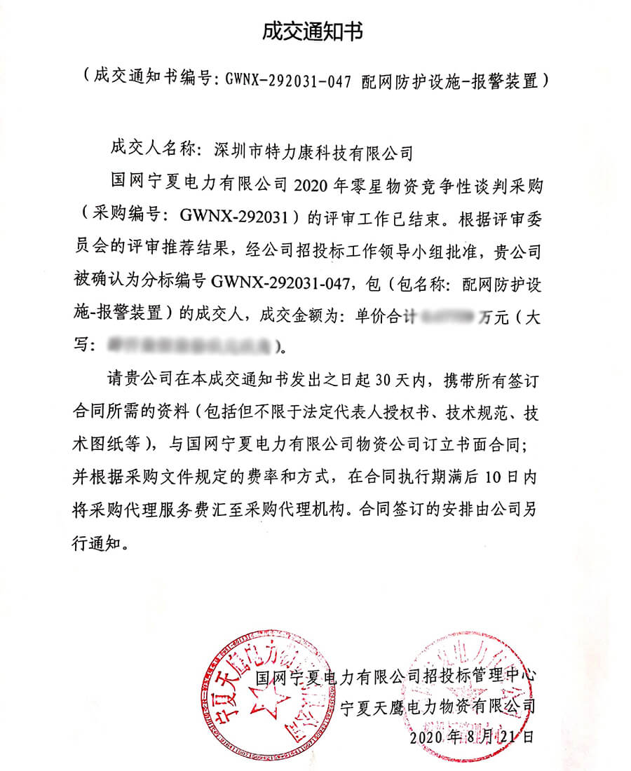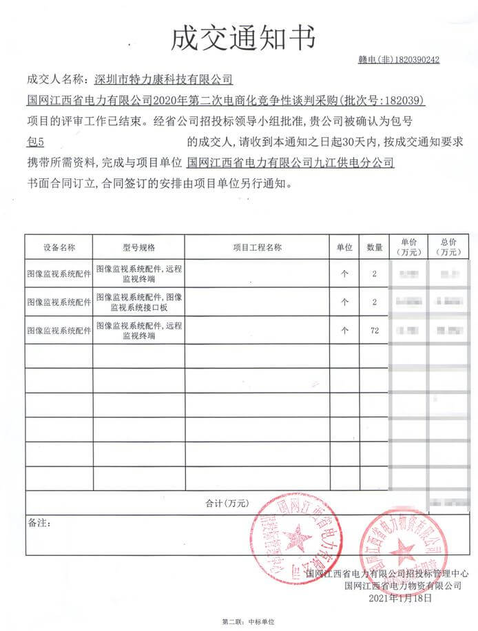 特力康中標(biāo)國網(wǎng)黑龍江送變電工程公司的2024年度第18次物資類競(jìng)爭(zhēng)性談判采購項(xiàng)目——慶陽驅(qū)鳥器物資框 特力康中標(biāo)國網(wǎng)甘肅省電力公司省管產(chǎn)業(yè)單位2024年第五次物資競(jìng)爭(zhēng)性談判授權(quán)采購項(xiàng)目 中標(biāo)喜訊:深圳市特力康科技有限公司成功入圍許繼集團(tuán)綜合能源公司輸電線路視頻在線監(jiān)測(cè)裝置模塊集采項(xiàng)目 中標(biāo)喜訊:特力康成功中標(biāo)國網(wǎng)重慶市電力公司渝中一片區(qū)項(xiàng)目 特力康成功中標(biāo)國網(wǎng)天津市電力公司2024年第二次?物?資招標(biāo)項(xiàng)目 特力康中標(biāo)國網(wǎng)安徽省電力有限公司蕪湖供電公司2024年3月非物質(zhì)采購項(xiàng)目 精準(zhǔn)捕捉 “微氣象”:浙江電力用特力康預(yù)警系統(tǒng)筑牢電網(wǎng)氣候防線 守護(hù) “電力咽喉”:湖南電力投用百套特力康三跨 4G 監(jiān)控球,筑牢安全防線 貴州電力裝特力康電網(wǎng)架空線路覆冰監(jiān)測(cè)系統(tǒng),精準(zhǔn)防冰保電網(wǎng)過冬? 百套落地山西電網(wǎng)!特力康輕量化輸電架空線路監(jiān)拍裝置,筑牢輸電安全網(wǎng) 破解采空區(qū)隱患:山西電力裝特力康通用型監(jiān)測(cè)裝置,守鐵塔穩(wěn)運(yùn)行 四川電力用特力康架空輸電線路山火監(jiān)測(cè)裝置,筑牢林區(qū)輸電 “防火墻”? 遼寧電力啟用特力康多視角監(jiān)拍裝置,全維度守護(hù)輸電安全? 破解黃土高原沉降難題:山西電力用特力康北斗裝置守桿塔安全? 寧夏配電線路安裝了我司防外破電子化智能警示牌