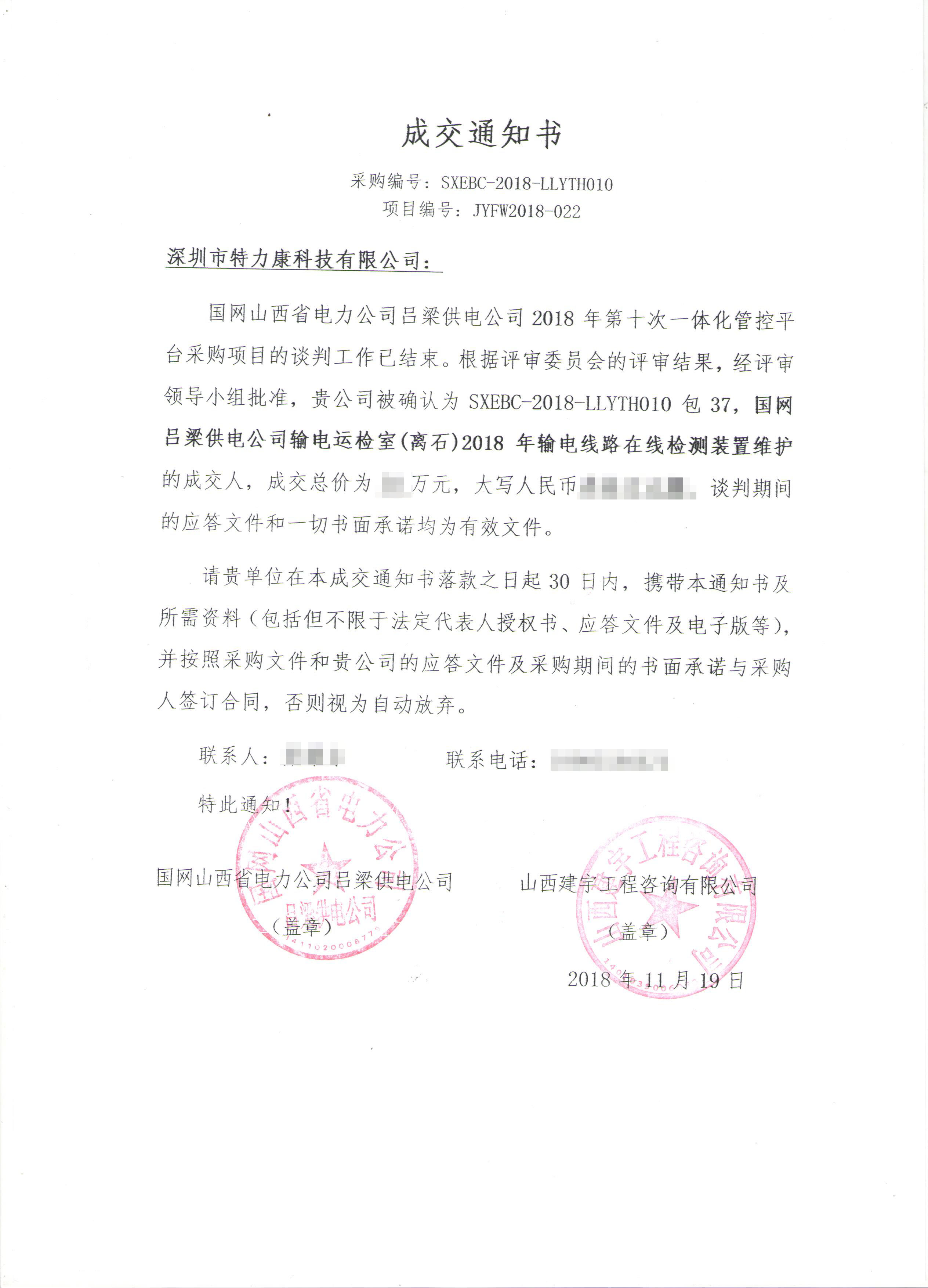 國網(wǎng)山西省電力公司2018年第十次一體化管控平臺采購項目評審工作已結(jié)束,經(jīng)評審委員會評審,經(jīng)國網(wǎng)山西省電力公司招投標領導小組批準,將評審結(jié)果公示。我司被確定為中標單位現(xiàn)將公告公示。